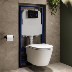 Set vas toaleta suspendat cu rezervor incastrat Cersanit B595 Tech Line + capac polipropilena si buton Base S701-626