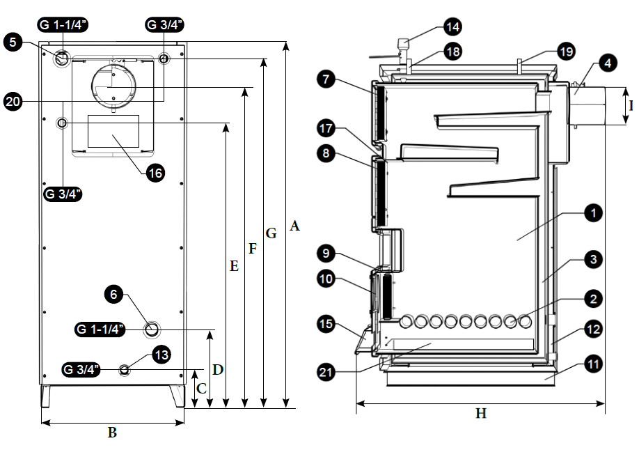Sunt proiectate în conformitate cu normele europene EN 303/5. Grosimea pereților cazanului care intră în contact cu focul este de 5 mm