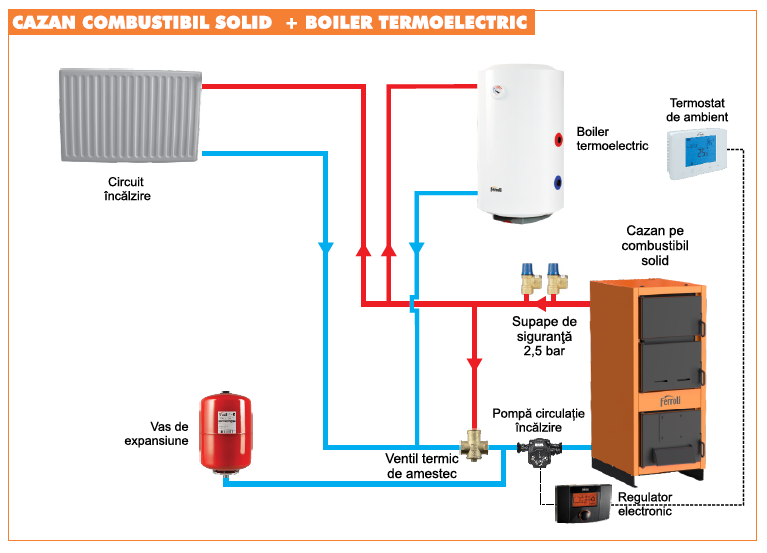 Centrala termica Ferroli JAR este destinata pentru sisteme de incalzire cu apa calda, si nu se poate utiliza pentru alimentare cu apa calda menajera in mod direct.