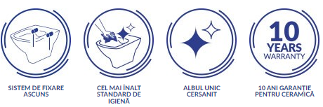 Această soluție inovatoare implică un nou sistem de instalare ascuns, care nu numai că ușurează și accelerează instalarea, ci și îmbunătățește valoarea estetică a produselor. Forma netedă a obiectelor sanitare este mult mai ușor de curățat.